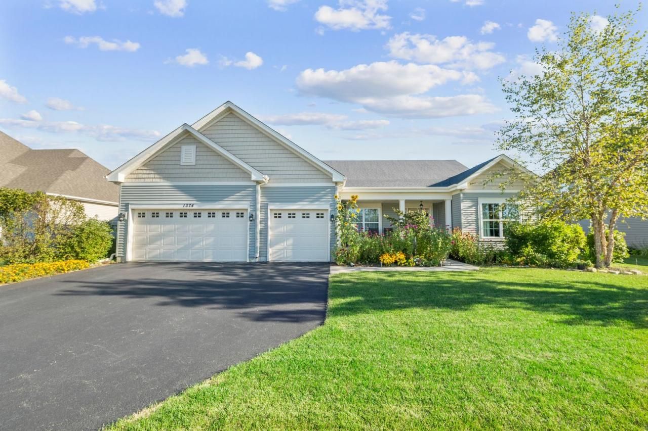 This beautiful, open-concept ranch home is filled with natural light and designed for both comfort and style. With 3 bedrooms, 3 full baths, and a partially finished basement, it offers ample space for living and entertaining. From the moment you arrive, the home's charming curb appeal stands out with its beautifully manicured landscaping and inviting front entrance. Step into the spacious foyer, where gorgeous hardwood flooring and an airy layout immediately welcome you. To the right, a private office enclosed by elegant French doors provides the perfect space for remote work. On the left, a sophisticated dining area with a tray ceiling sets the stage for memorable gatherings. The soaring vaulted ceiling in the family room creates a grand yet inviting atmosphere, complete with a fireplace framed by windows. The adjacent kitchen is thoughtfully designed with granite countertops, stainless steel appliances, 42 cabinetry with crown molding, and a generously sized island-ideal for both meal prep and casual gatherings. The eat-in area offers lovely backyard views and easy access to the patio through a sliding glass door. The expansive primary suite is a true retreat, featuring dual walk-in closets and an en-suite bathroom with double sinks, a separate shower, and a relaxing soaking tub. Two additional bedrooms and a full bath complete the main level. Downstairs, the lower level is well on its way to becoming a fantastic additional living space, with drywall, electrical, plumbing, doors, and a full bath already in place. Simply add your preferred flooring and ceiling to nearly double your square footage. Step outside to enjoy the backyard, with mature landscaping for privacy and enjoyment. Across the street, open natural space ensures uninterrupted views. This home is just minutes from Hughes Creek Golf Course, the Metra commuter train, and quick access to I-88. Located in the sought-after Blackberry Creek neighborhood, residents enjoy scenic walking trails, ponds, a park, and an on-site elementary school.