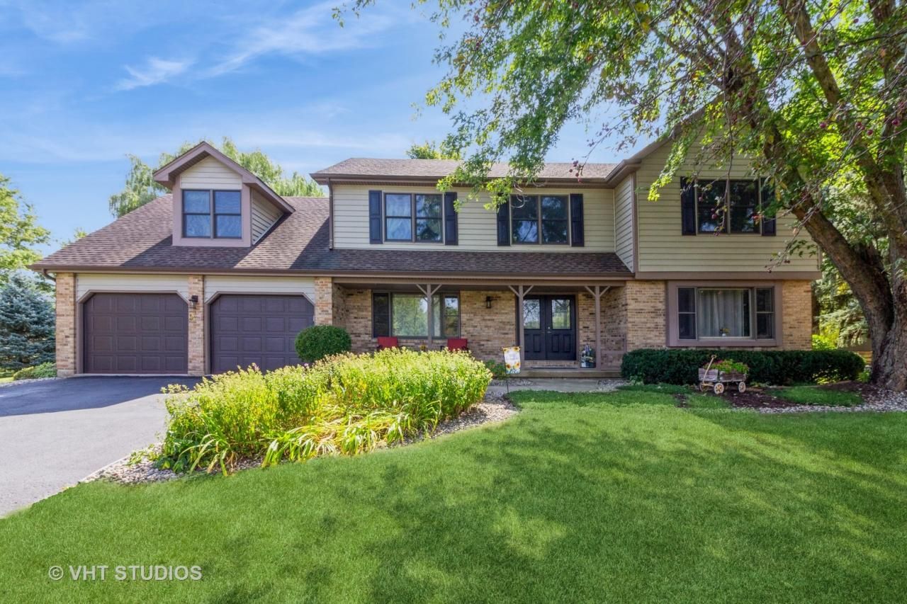 This charming home in Silver Glen Meadows offers a serene setting on lovely 1.25 acre lot. With an open floor plan, it features a custom kitchen with maple cabinets, stainless steel appliances, granite counters, and a breakfast bar. The house boast hardwood floors, formal living and dining rooms, oversized family room with eye catching fireplace. 4 bedrooms, plus 2nd floor exercise room, 2.1 baths, and a master bath with a separate glass shower, soaker tub and heated tile floors. Additionally, there is a first floor den for those jobs you can work from home. Good size first floor laundry room for added convenience. Finished basement for more living space. Perfect for family movie night. Additionally there is an abundance of storage with built in shelving. Enjoy relaxing on the front porch or entertaining on the new deck in the backyard. Located in the award winning St Charles School District, this home offers both comfort and functionality in a beautiful and peaceful setting.